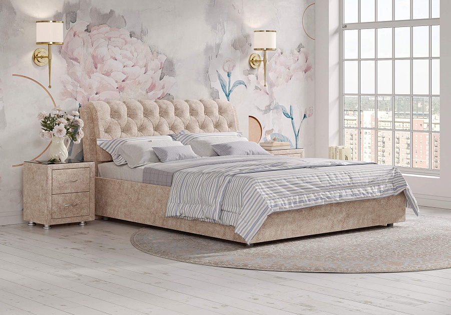 В небольшой комнате более актуальна компактность кровати: ширина спального места меньше, оно не столь объемное, как у обычных кроватей, и не глубокое. Например, как в моделях Richmond, Caprice, Bari или на фото ниже: