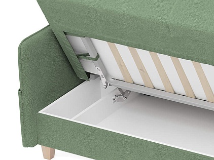 Диван для сна в скандинавском стиле с механизмом трансформации «клик-кляк», тонкими подлокотниками и коробом для хранения. Основание дивана металлическое, с ламелями. Матрас анатомический с независимым пружинным блоком. Благодаря съемному чехлу с объемной стежкой в форме ромбов, диван органично впишется в современные интерьеры в скандинавском стиле и стиле минимализм. Благодаря тонким подлокотникам у дивана минимальные габариты как в сложенном, так и разложенном виде. Широкие карманы-органайзеры на подлокотниках позволят хранить в доступе необходимые вещи. Forest имеет 3 положения трансформации: диван, кровать, релакс. Диван оборудован вместительным коробом для хранения. Опоры деревянные, натурального цвета, просвет над полом способствует легкой уборке под диваном, в том числе роботом-пылесосом.