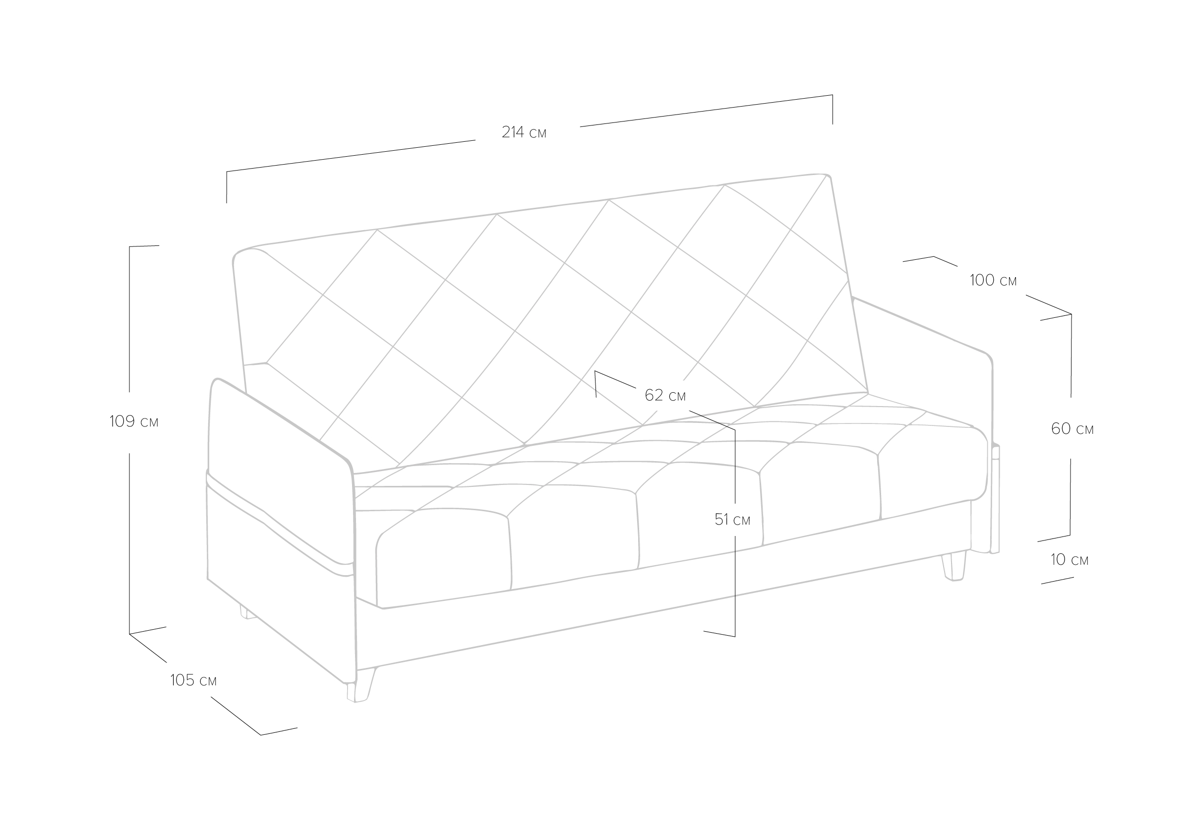 Диван для сна в скандинавском стиле с механизмом трансформации «клик-кляк», тонкими подлокотниками и коробом для хранения. Основание дивана металлическое, с ламелями. Матрас анатомический с независимым пружинным блоком. Благодаря съемному чехлу с объемной стежкой в форме ромбов, диван органично впишется в современные интерьеры в скандинавском стиле и стиле минимализм. Благодаря тонким подлокотникам у дивана минимальные габариты как в сложенном, так и разложенном виде. Широкие карманы-органайзеры на подлокотниках позволят хранить в доступе необходимые вещи. Forest имеет 3 положения трансформации: диван, кровать, релакс. Диван оборудован вместительным коробом для хранения. Опоры деревянные, натурального цвета, просвет над полом способствует легкой уборке под диваном, в том числе роботом-пылесосом.