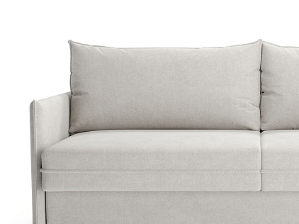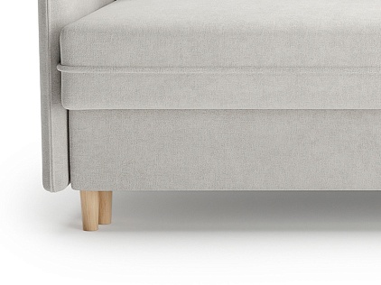 Диван для сна в скандинавском стиле с механизмом трансформации пантограф и коробом для хранения. Модель без броского декора, с прямыми линиями. Благодаря декоративному канту на сидении, подлокотниках и подушках, а также опорам из натурального массива Rain органично впишется в современные интерьеры в скандинавском стиле. У дивана анатомический матрас с блоком независимых пружин, жесткость средняя. Тонкие подлокотники делают диван негабаритным в длину. Комфортная глубина и высота сиденья обеспечит ежедневный комфорт. Задняя спинка предотвращает загрязнение и повреждение стены. В основе мягких подушек – микс наполнителей: поролоновая крошка не дает деформироваться, а синтетическое волокно добавляет комфорт. Опоры деревянные, два цвета на выбор. Просвет над полом способствует легкой уборке под диваном, в том числе роботом-пылесосом..
