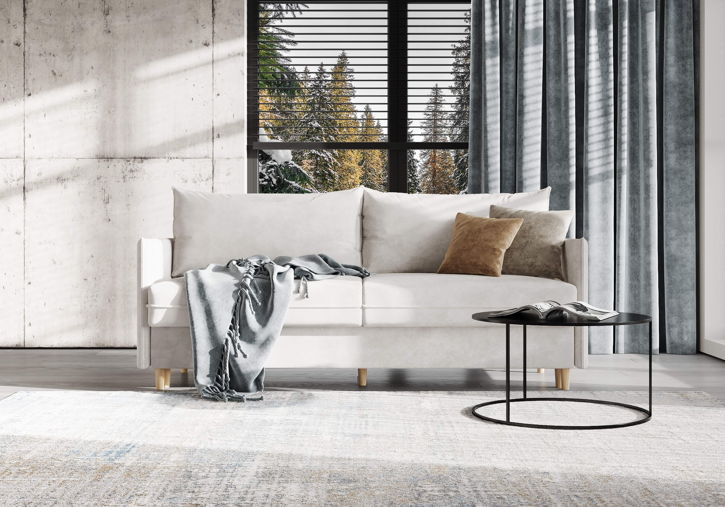 Простота конструкции, лаконичный декоративный кант в качестве декора позволяют дивану органично вписаться в современные интерьеры в скандинавском стиле.