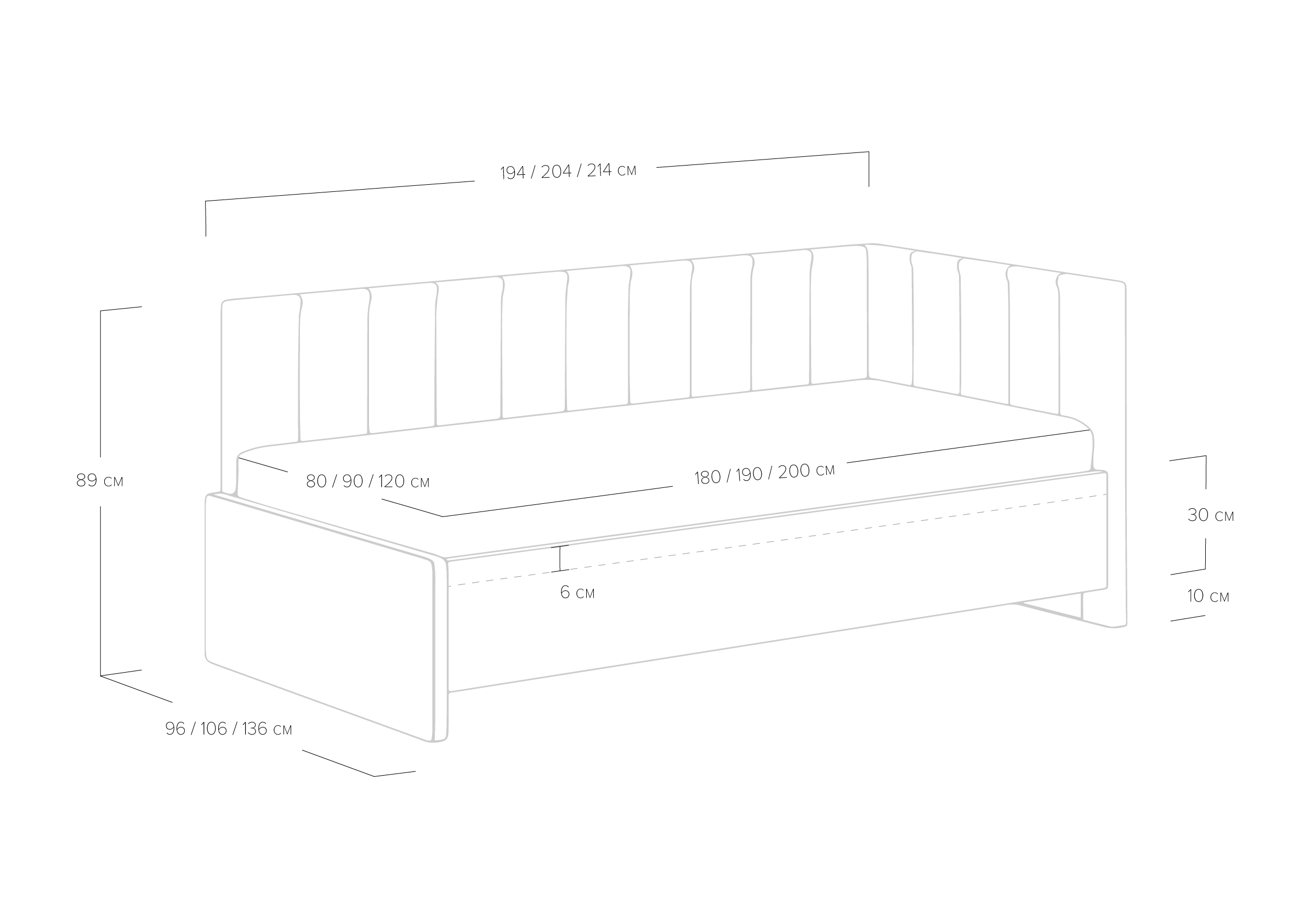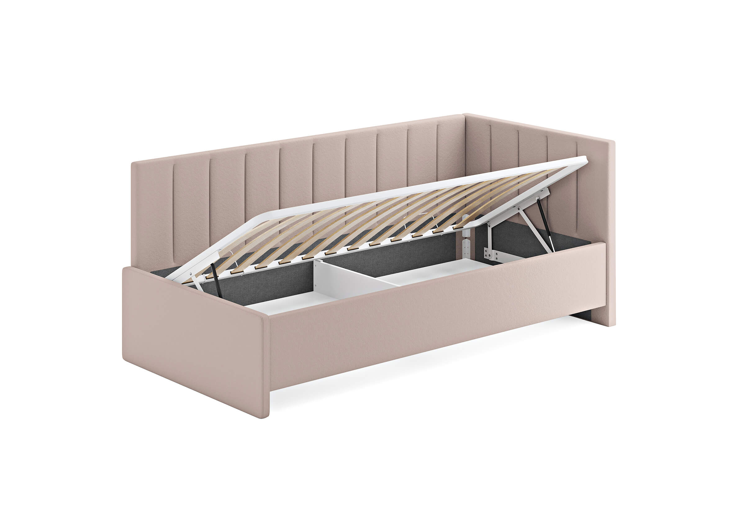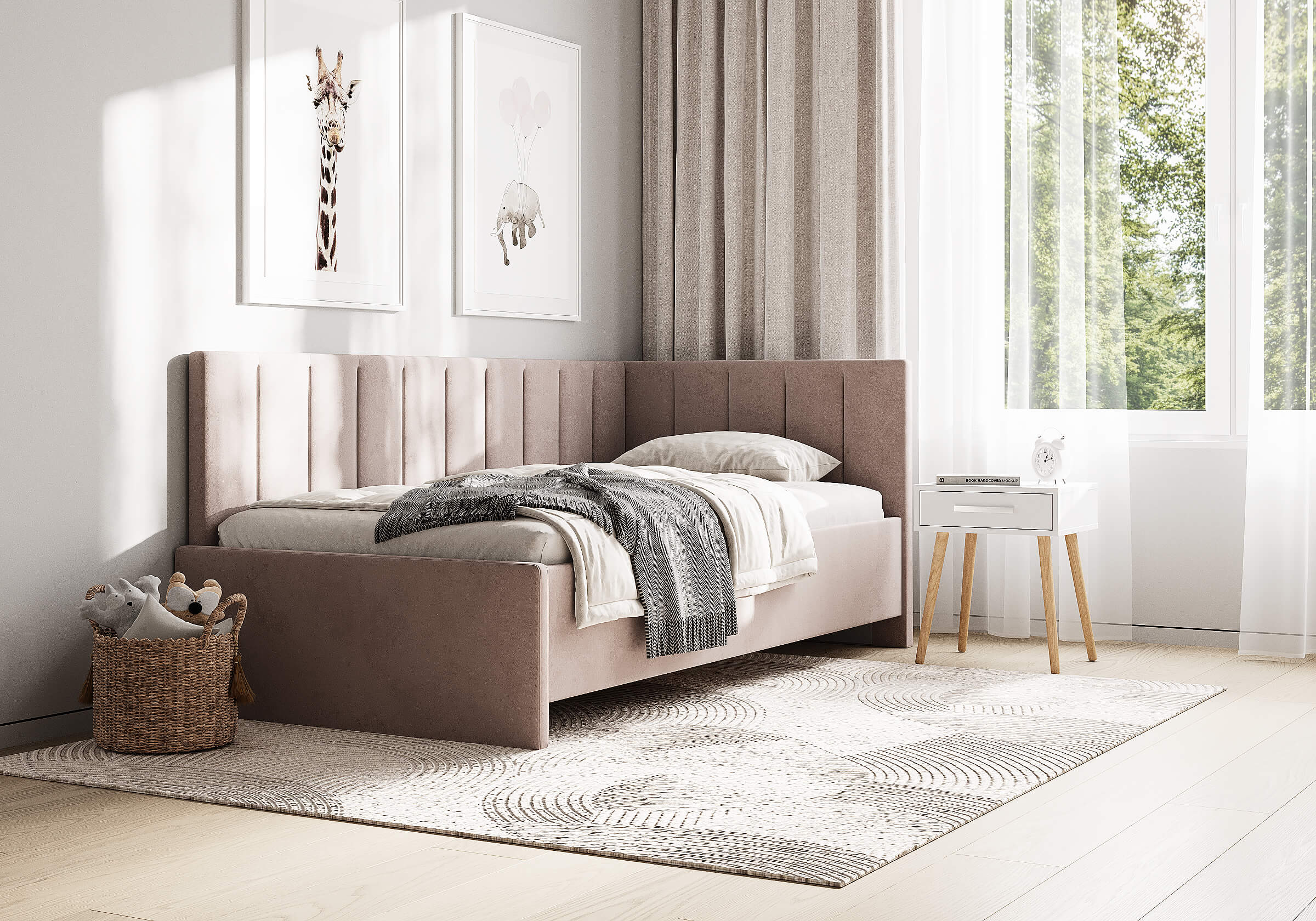 Односпальная кровать с боковой спинкой для современных интерьеров. Модель занимает минимальное пространство в спальне. Подходит для квартир с небольшой площадью, детских и подростковых спален, гостевых комнат. Мягкие элементы спинки, создают атмосферу уюта, а благодаря размерному ряду, защитному бортику и множеству цветов и фактур кровать подойдет как малышам, так и подросткам. Защитный бортик приобретается дополнительно, его легко установить на левую или правую сторону кровати. Боковую спинку кровати можно установить при сборке на правую или левую сторону, что делает модель универсальной. Модель укомплектована ортопедическим основанием, при желании в нее можно установить подъемный механизм с бельевым коробом. Расстояние от пола до царг способствует легкой уборке под кроватью, в том числе роботом – пылесосом.