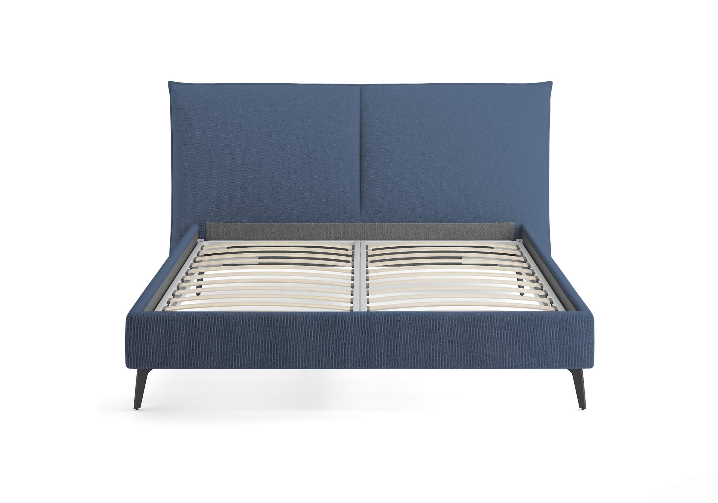 Кровать с мягким изголовьем в виде больших подушек, которые придают спальне особую атмосферу комфорта и уюта. Сзади данная модель полностью обита мебельной тканью, что сохраняет целостность образа и позволяет поставить кровать в центр комнаты. Высокие металлические опоры создают ощущение легкости и изящности, облегчая поддержание чистоты, что делает изделие практичным для повседневного использования.