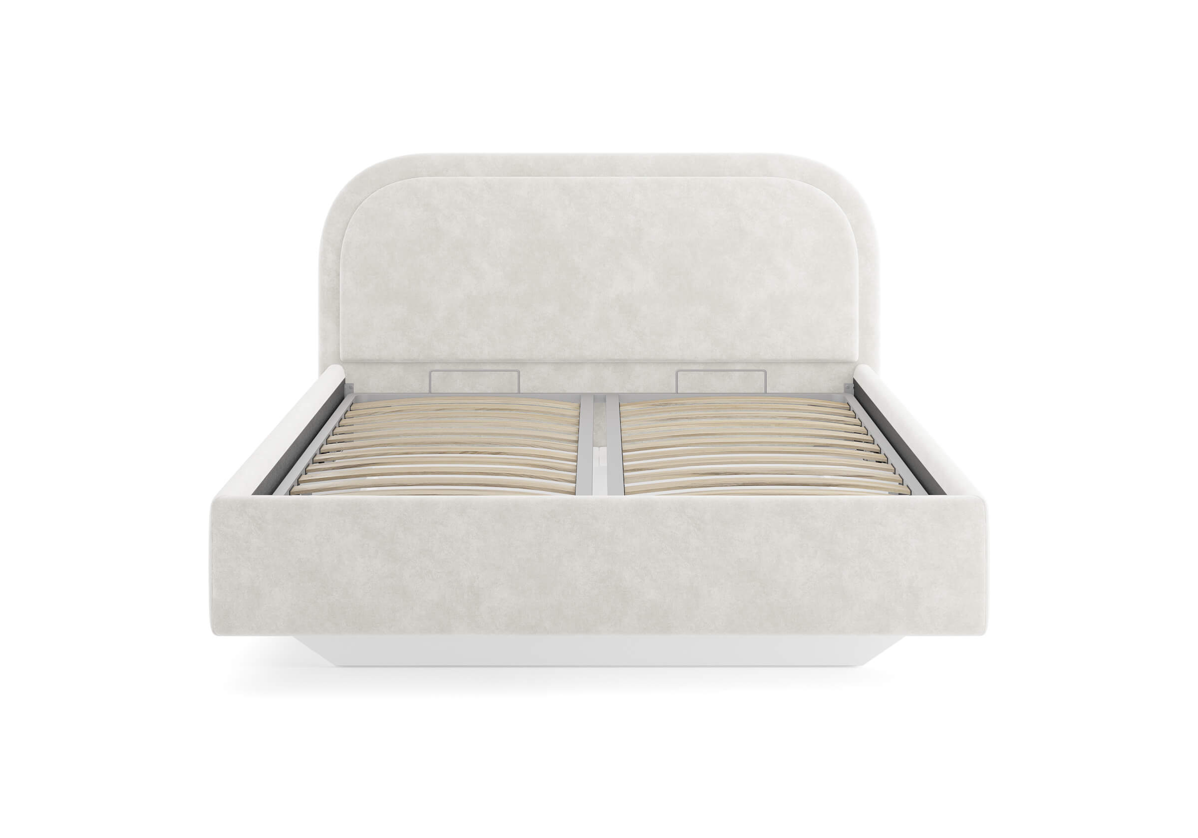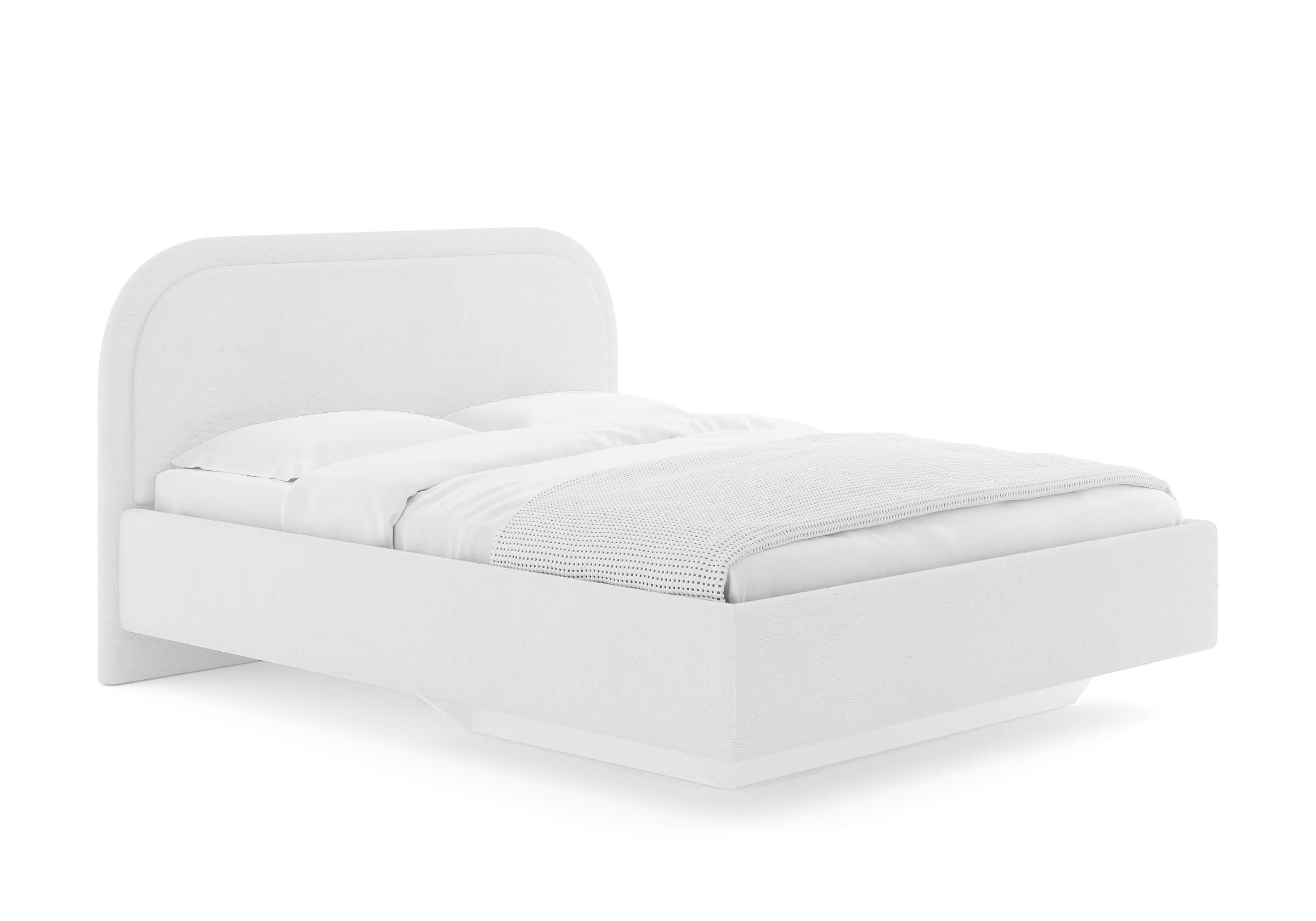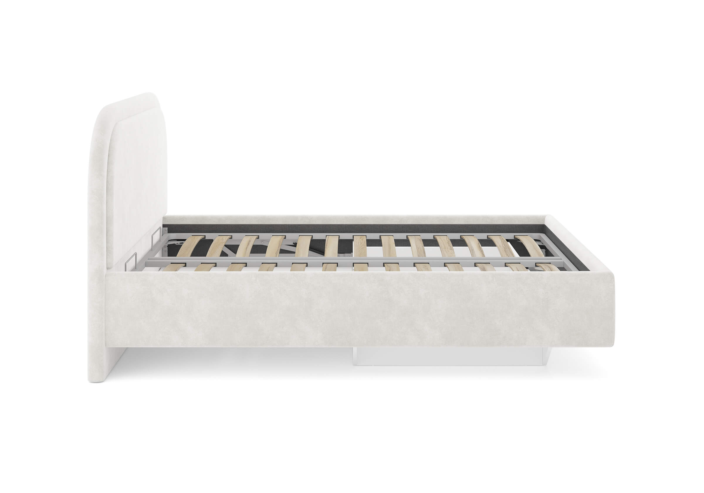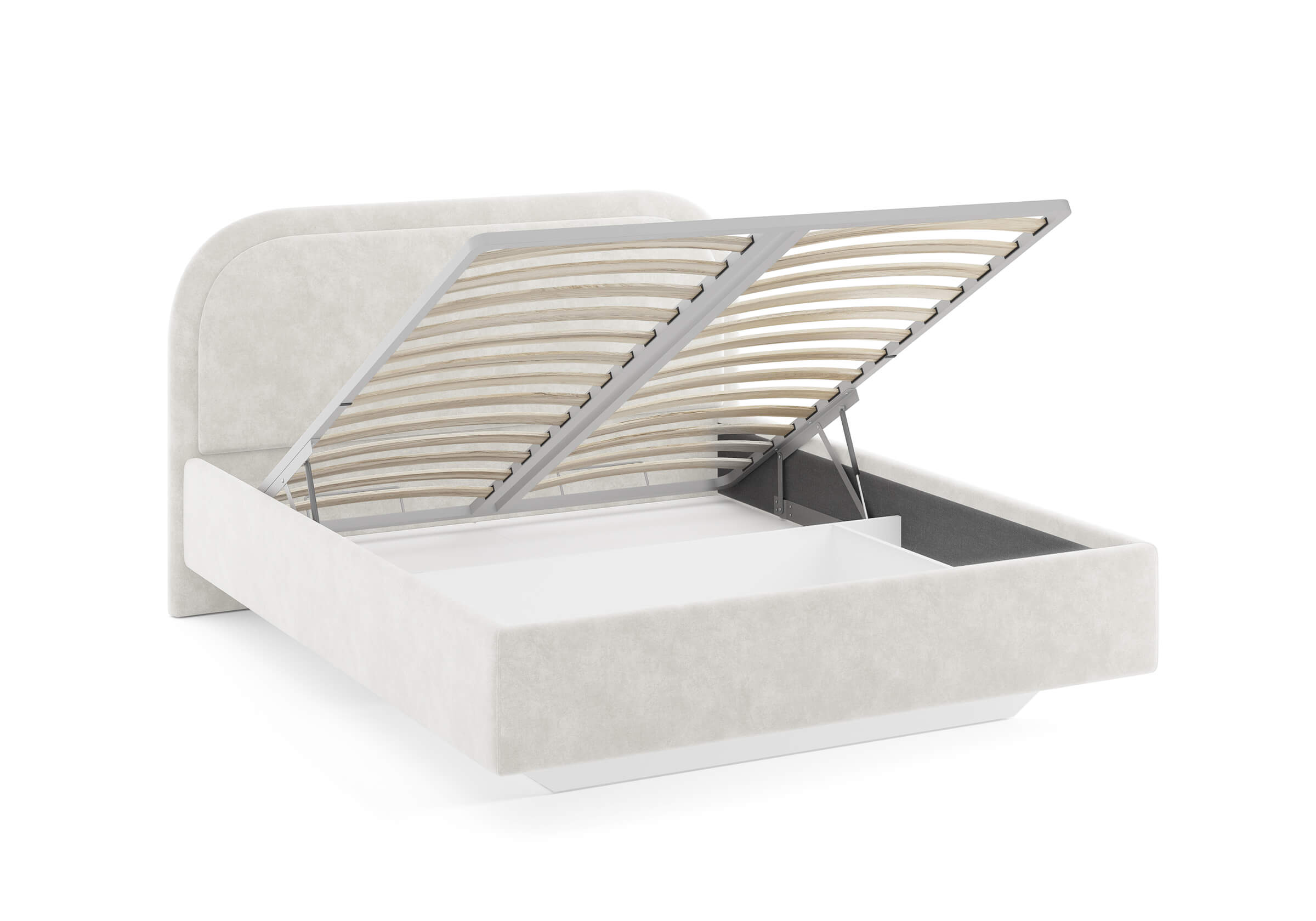 Кровать с мягким закругленным изголовьем и рамкой по периметру придаст уют вашей спальне. Модель визуально парит над полом, благодаря уникальному конструктиву без использования опор. При этом имеет подъемный механизм с бельевым коробом. Доступна во всех видах ткани