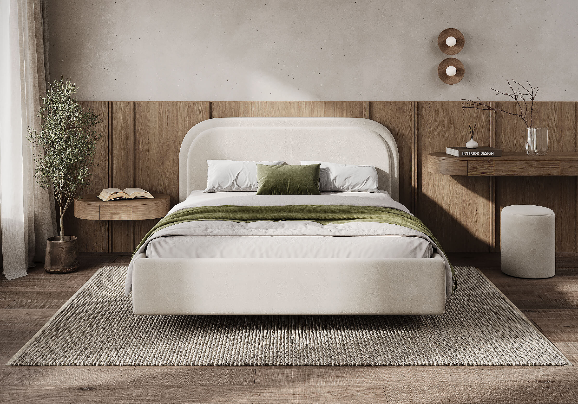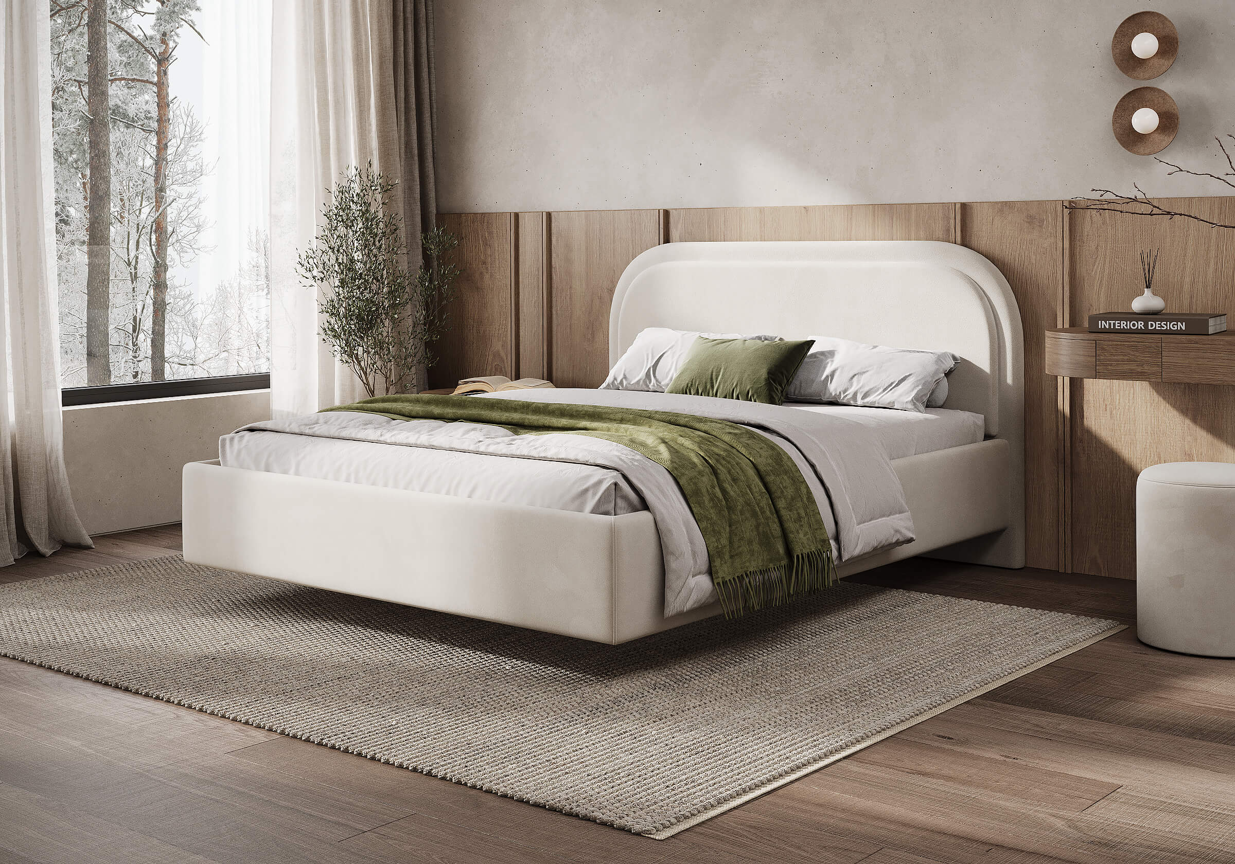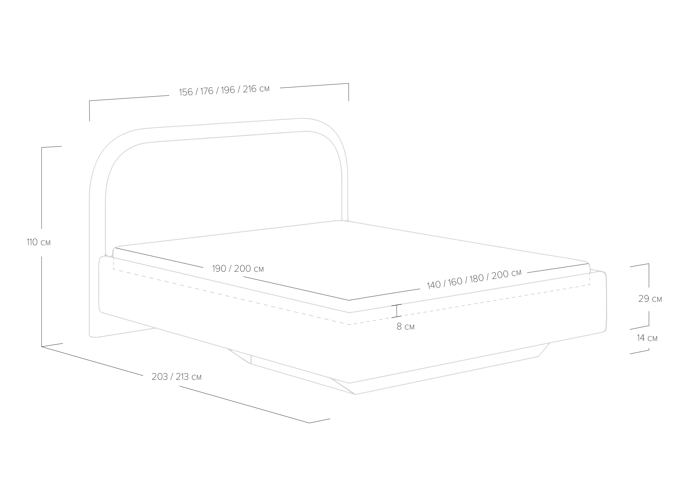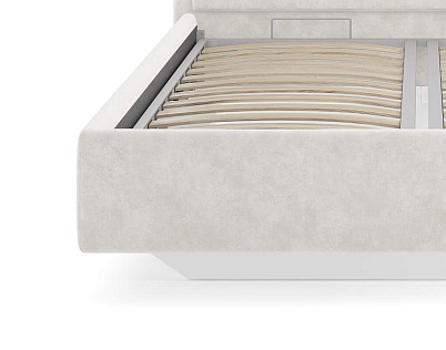 Кровать с мягким закругленным изголовьем и рамкой по периметру придаст уют вашей спальне. Модель визуально парит над полом, благодаря уникальному конструктиву без использования опор. При этом имеет подъемный механизм с бельевым коробом. Доступна во всех видах ткани