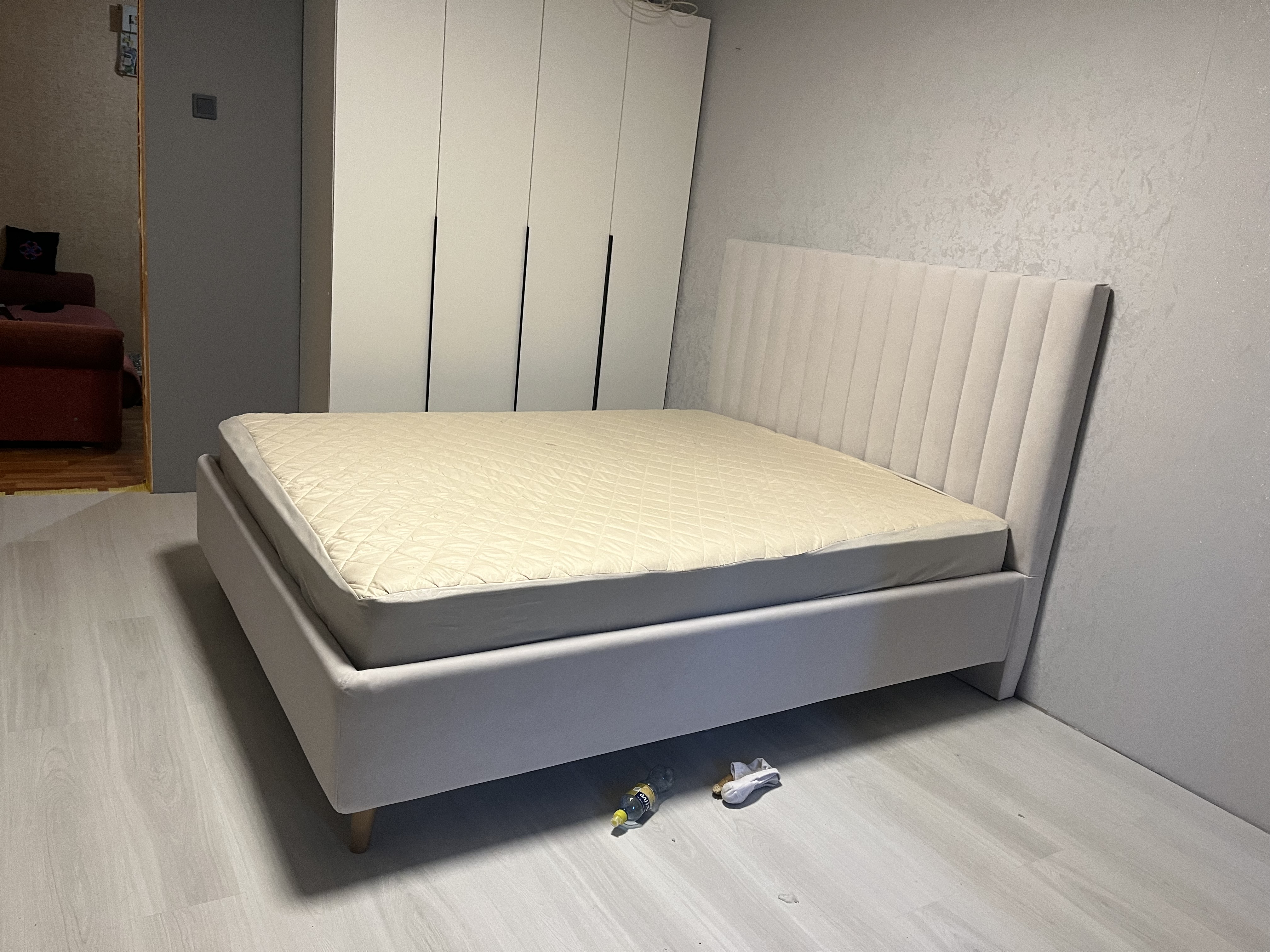 Кровать шикарная, особенно в изумрудно зеленом исполнении. Спинка высокая и массивная, смотрится интересно и стильно. Качество материалов, также на высоте. Доставили через две недели, без задержек, точно по времени, как обещали. Собрали быстро, мусор за собой вынесли. В общем одни плюсы. Рекомендую!
