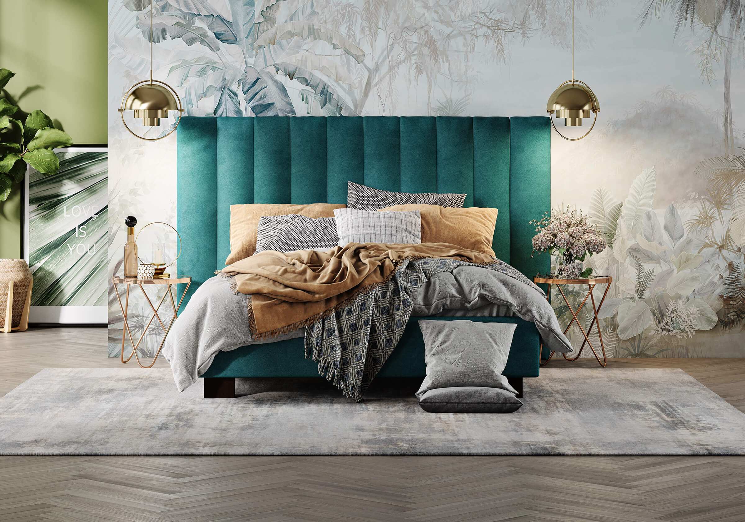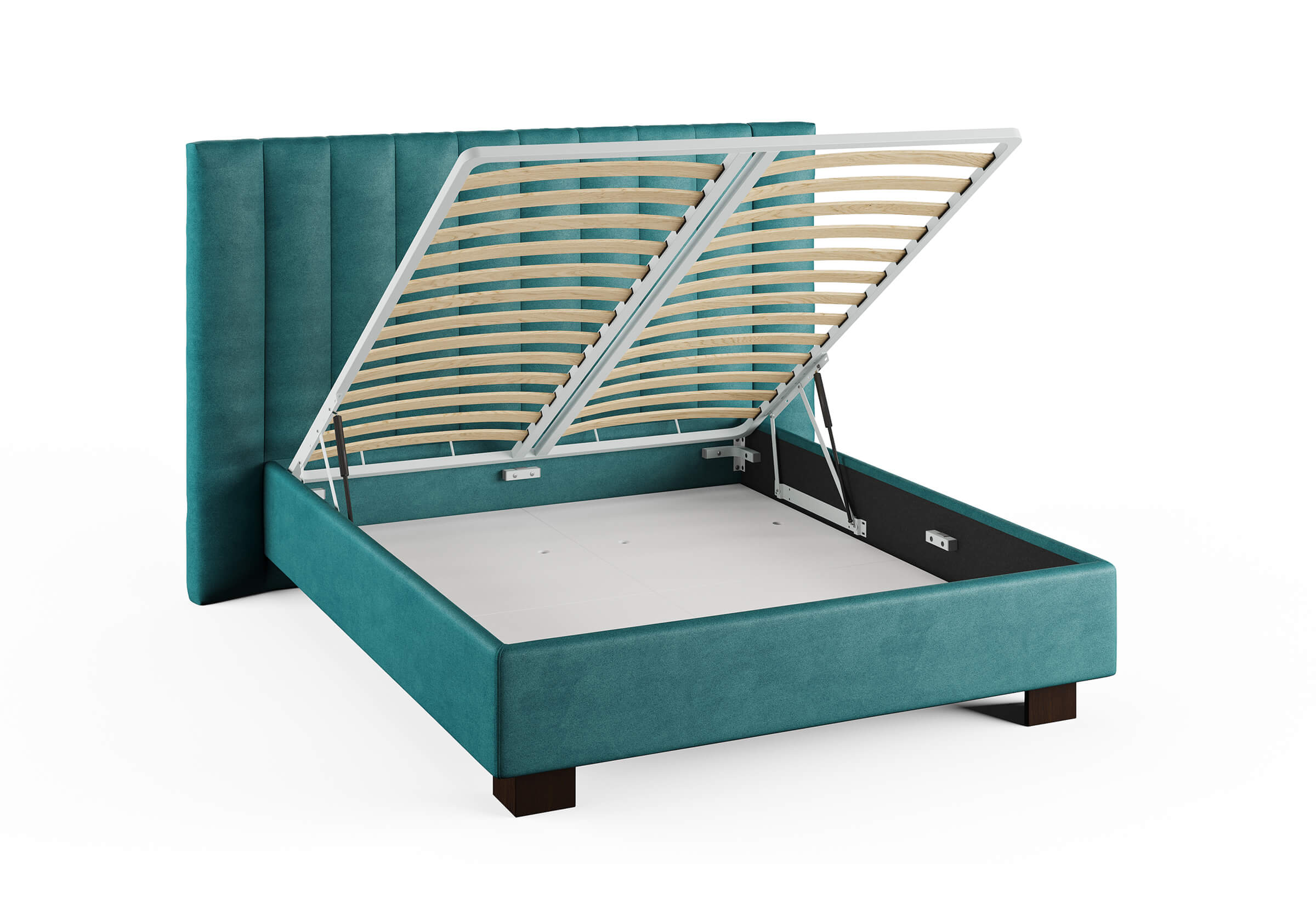 Кровать соответствует самым модным тенденциям и прекрасно впишется в современный интерьер просторной спальни. Высокая спинка с мягкими элементами выглядит эффектно. Поворотный механизм боковых элементов изголовья меняет форму, создавая более уютную атмосферу в спальне. Увеличенная прочность кровати достигается за счет металлического каркаса по периметру. Массивные ножки, выполнены из бука цвета венге. Расстояние от пола до царг способствует легкой уборке под кроватью, в том числе роботом – пылесосом. Модель укомплектована ортопедическим основанием, при желании возможно установить подъемный механизм с бельевым коробом либо трансформируемое основание Aquarius.