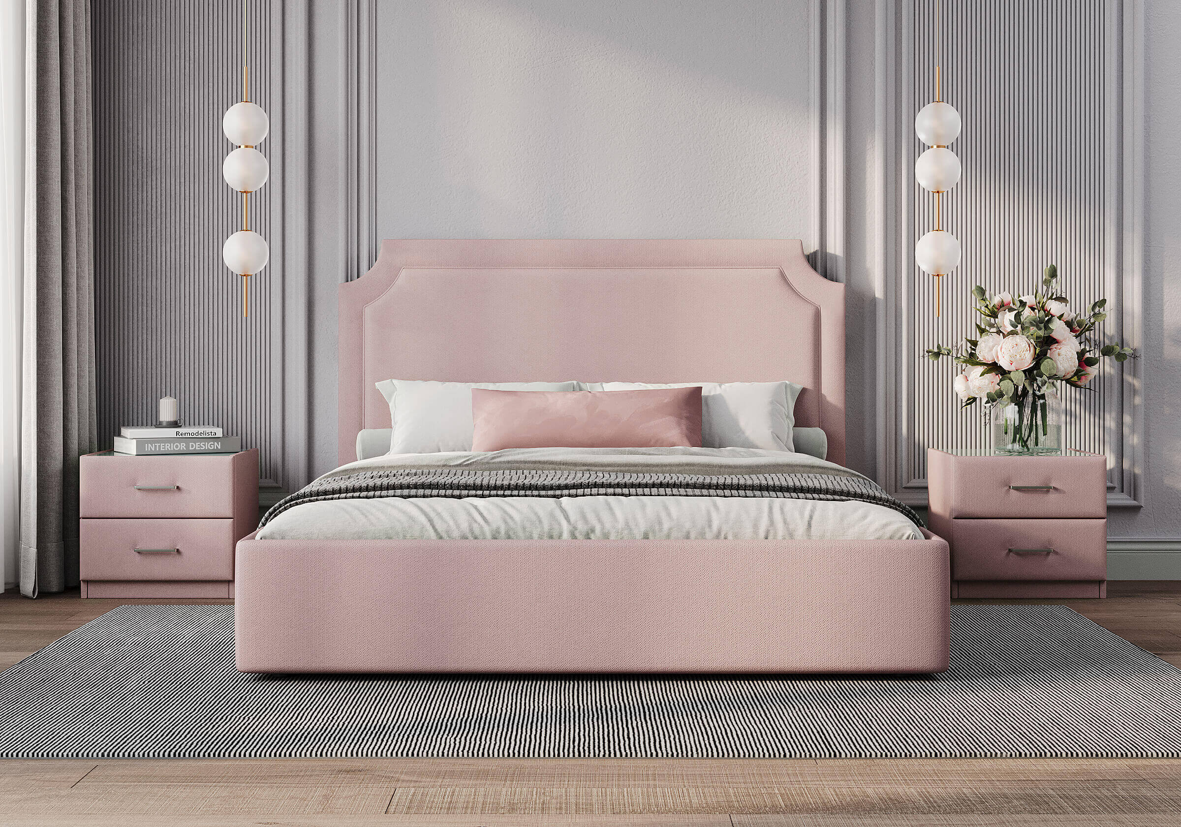 Изголовье выполнено в виде декоративной рамки с кантом. Изящные изгибы углов в классическом стиле придают кровати индивидуальность.