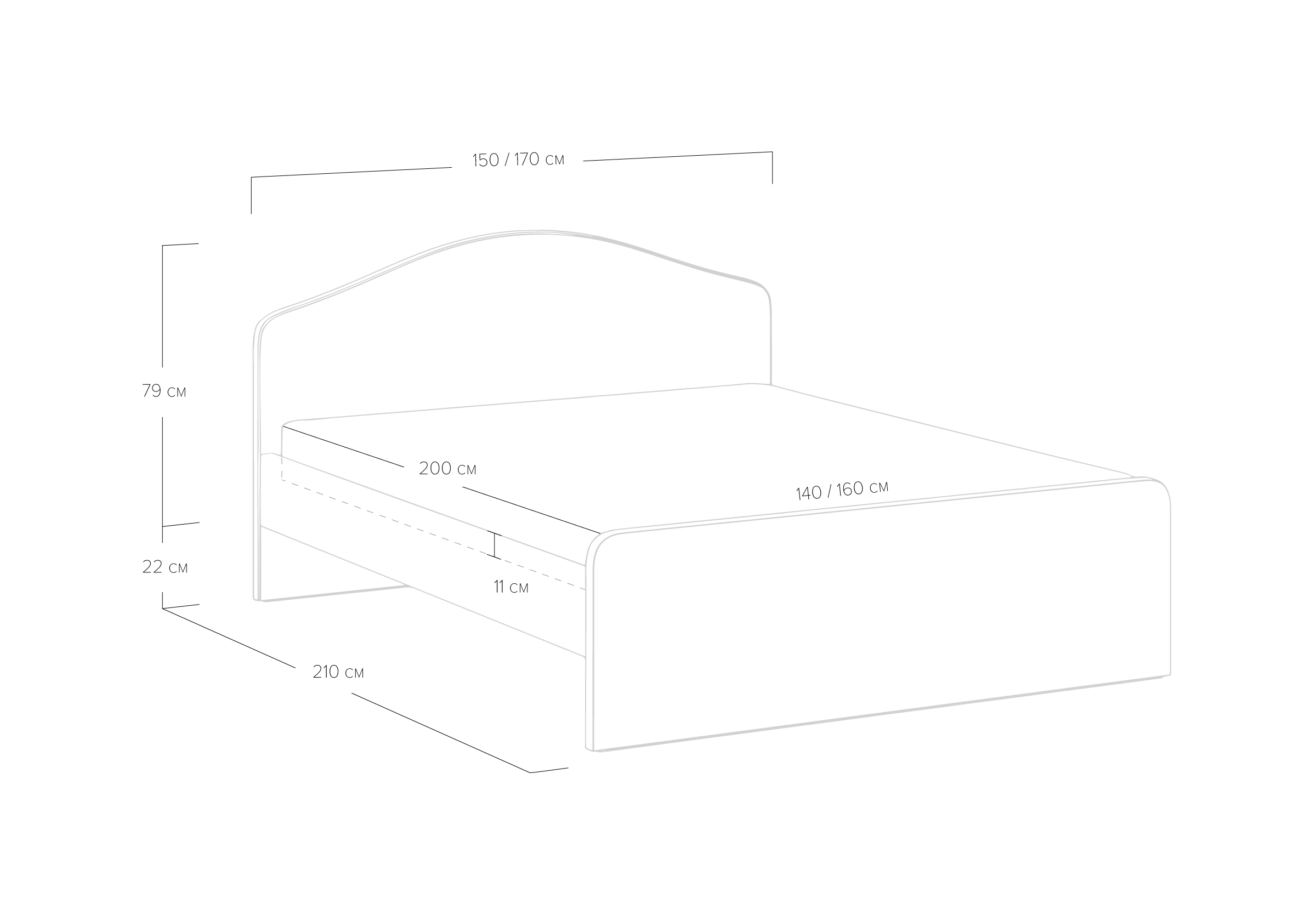 Изогнутое изголовье без декора делают кровать акцентом спальни и позволяет отнести ее к разным по стилю интерьерам.