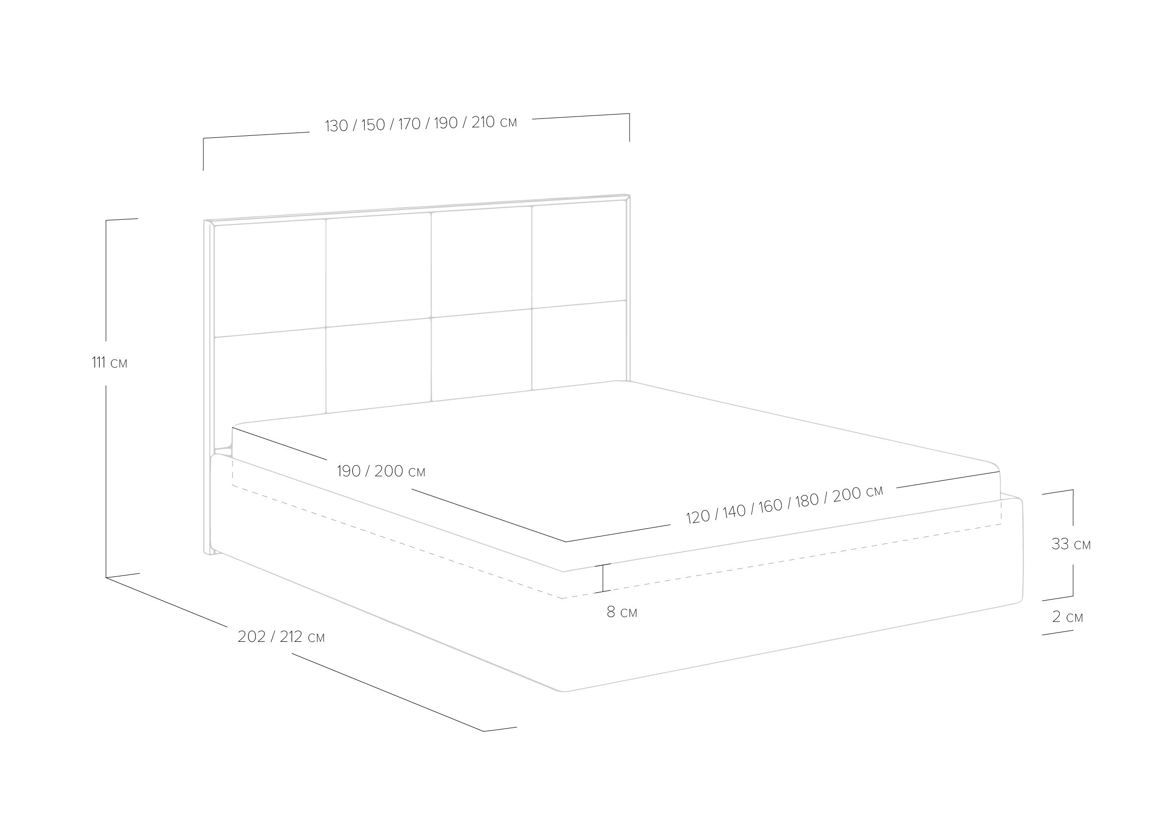 Возможна установка подъемного механизма со вместительным бельевым ящиком. Дно бельевого ящика легко сдвигается для обеспечения уборки под кроватью.