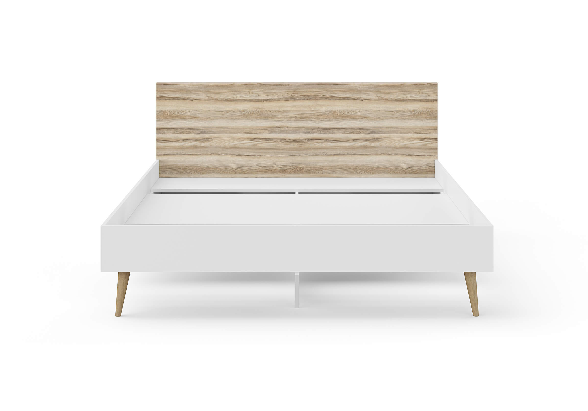 Основание кровати на деревянных ножках. Благодаря увеличенной высоте позволяют осуществлять легкую уборку под кроватью, даже с помощью робота-пылесоса.