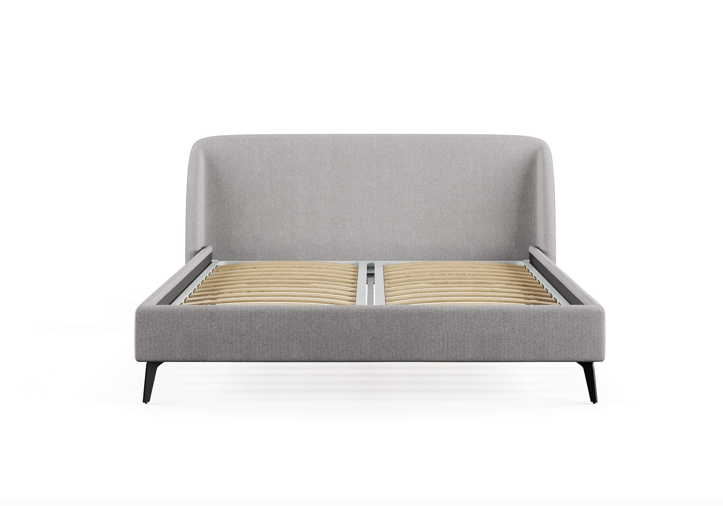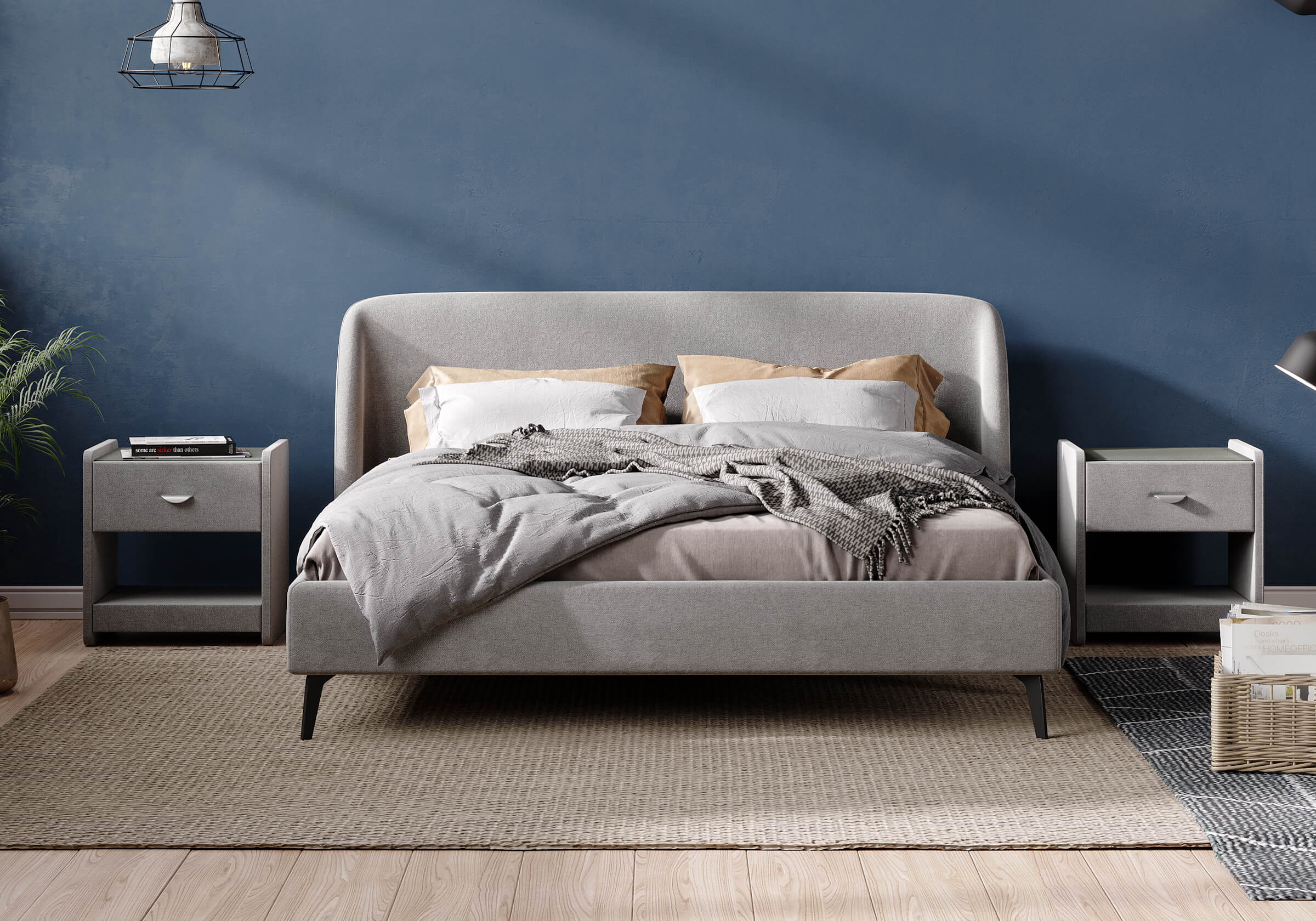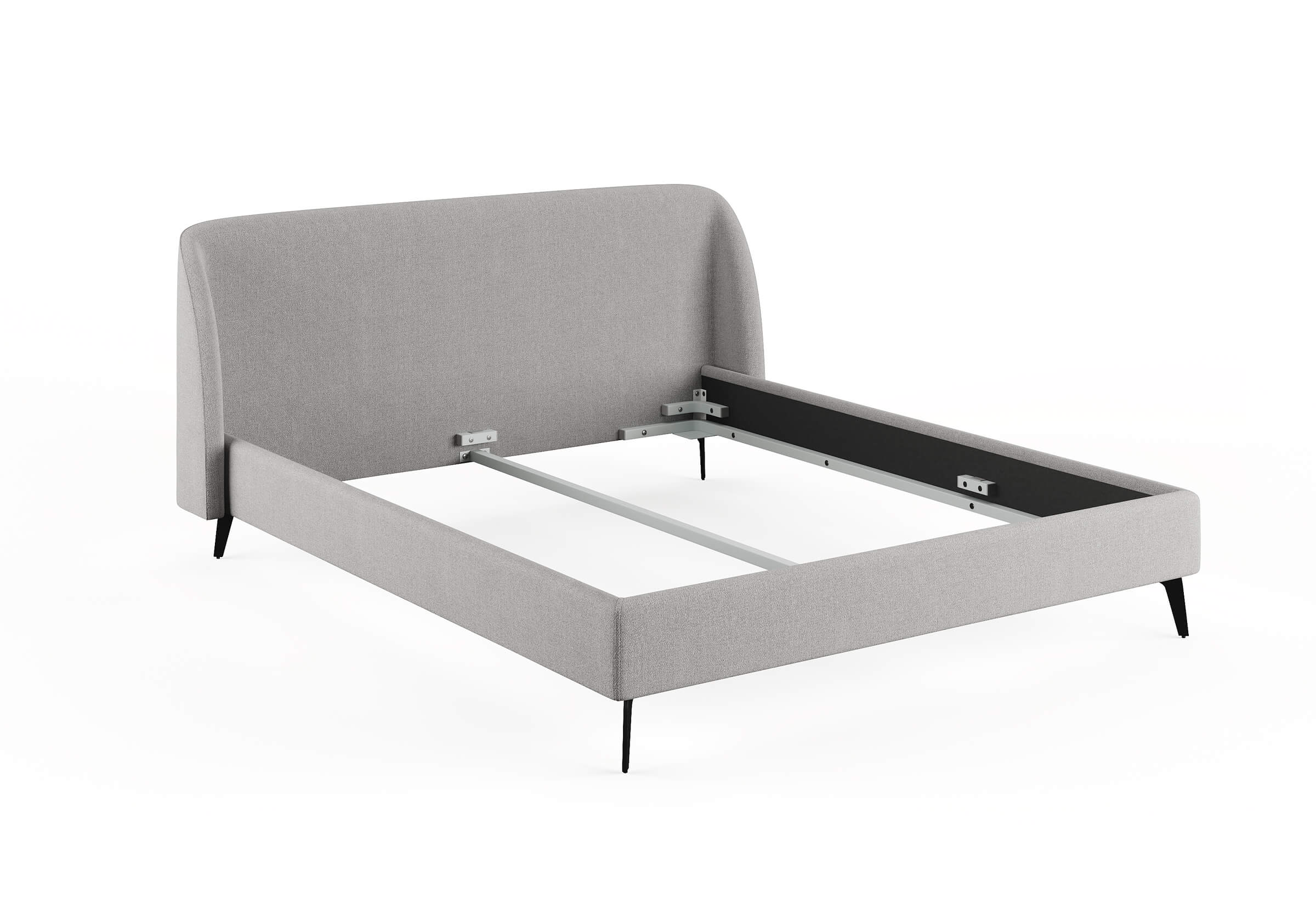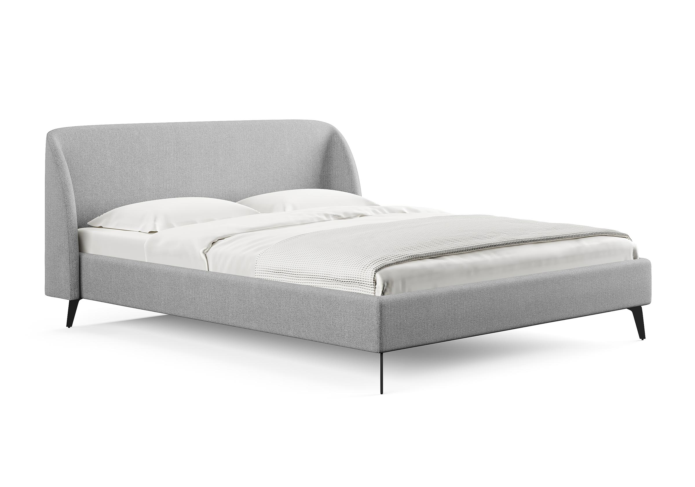 Кровать с закругленным изголовьем делает спальное место особенно уютным. Ее дизайн удачно подойдет для интерьеров в современном стиле, стиле минимализм и стиле mid-century модерн. Спинка кровати выполнена в основной ткани, благодаря этому ее можно установить в центре комнаты. Узкие царги и стильные металлические ножки делают кровать легкой и лаконичной. Кант на изголовье выступает в качестве декора, подчеркивает ее выразительность. Увеличенная прочность кровати достигается за счет металлического каркаса по периметру. Расстояние от пола до царг способствует легкой уборке под кроватью, в том числе роботом – пылесосом.