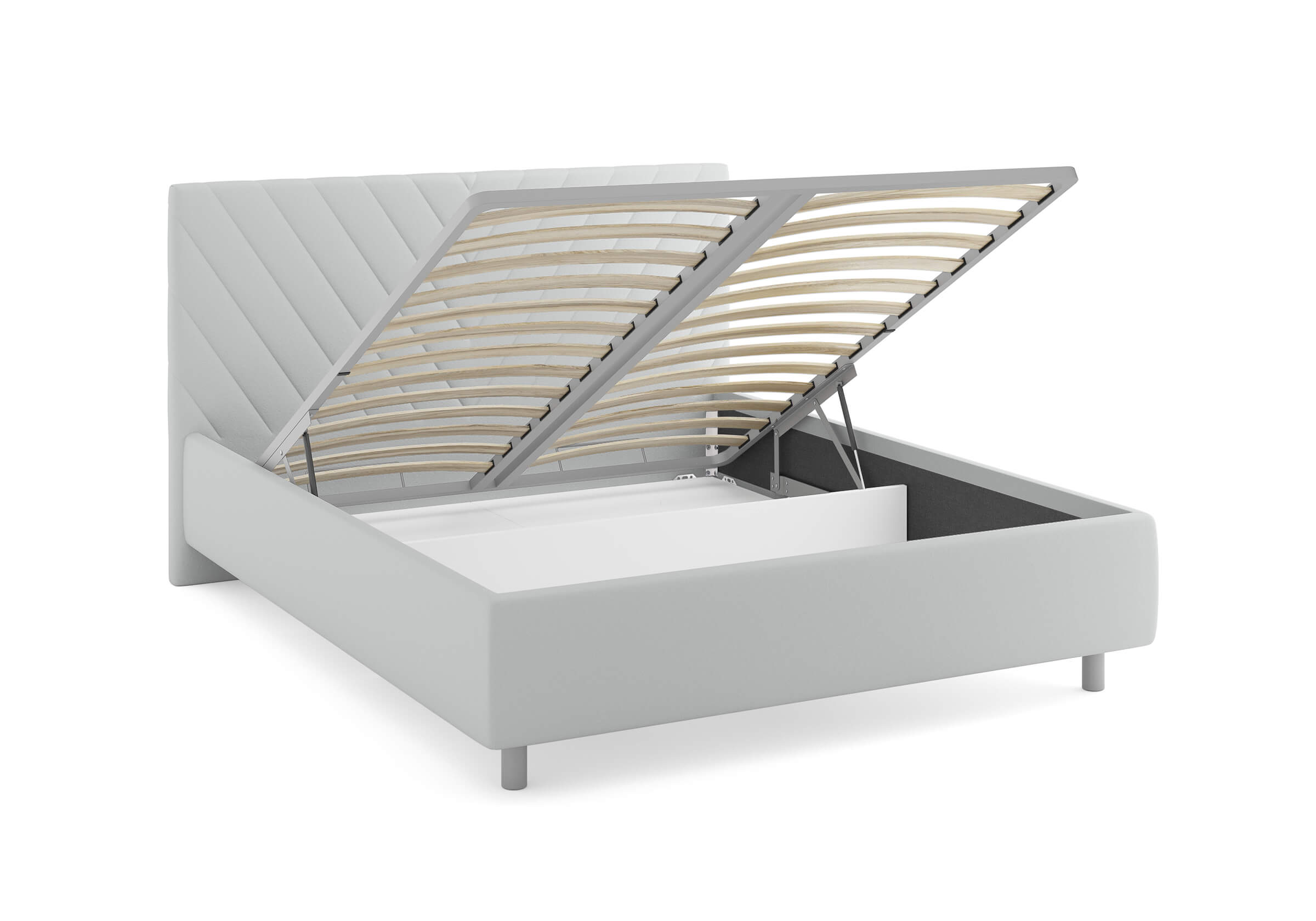 Основание кровати на высоких металлических ножках. Благодаря увеличенной высоте позволяют осуществлять легкую уборку под кроватью, даже с помощью робота-пылесоса.