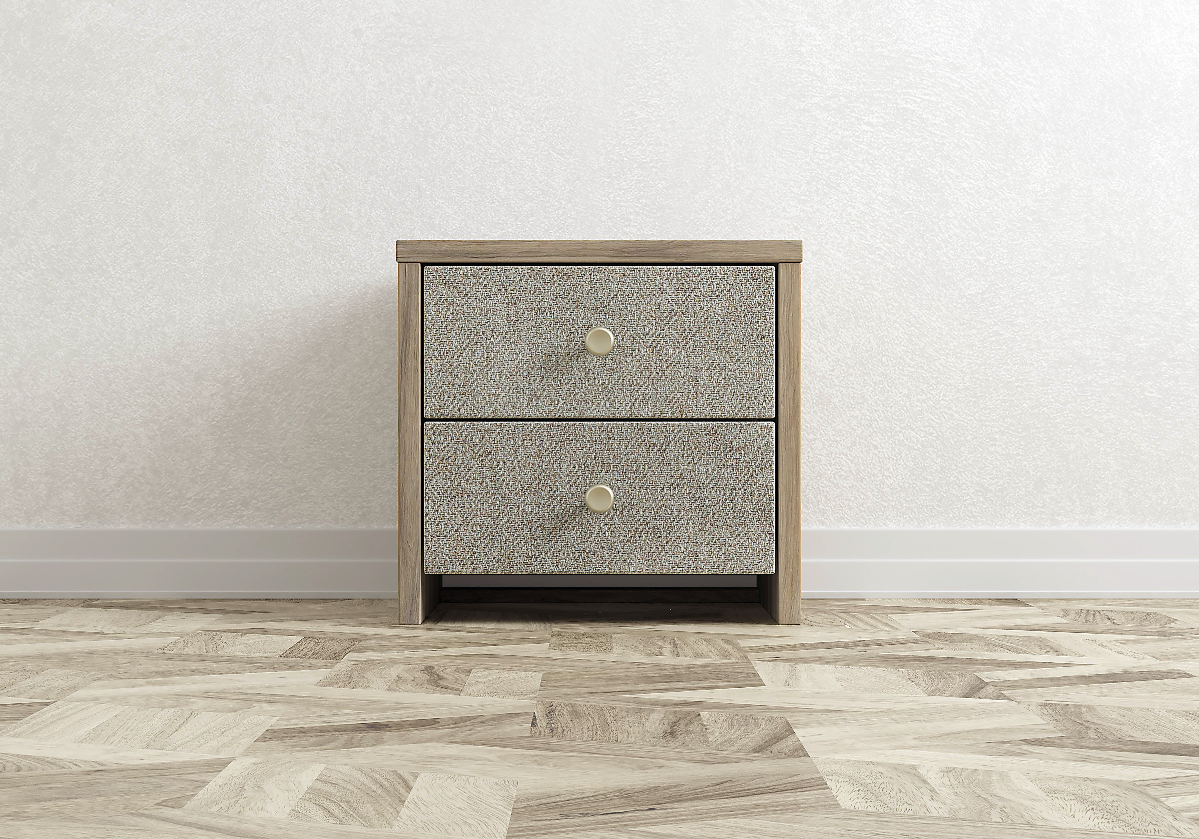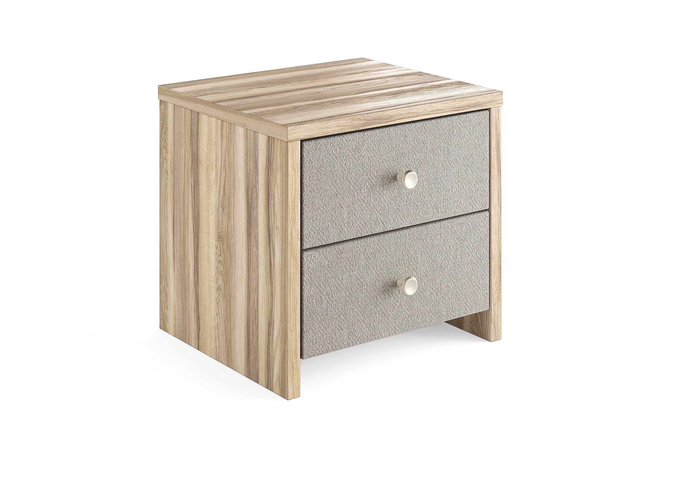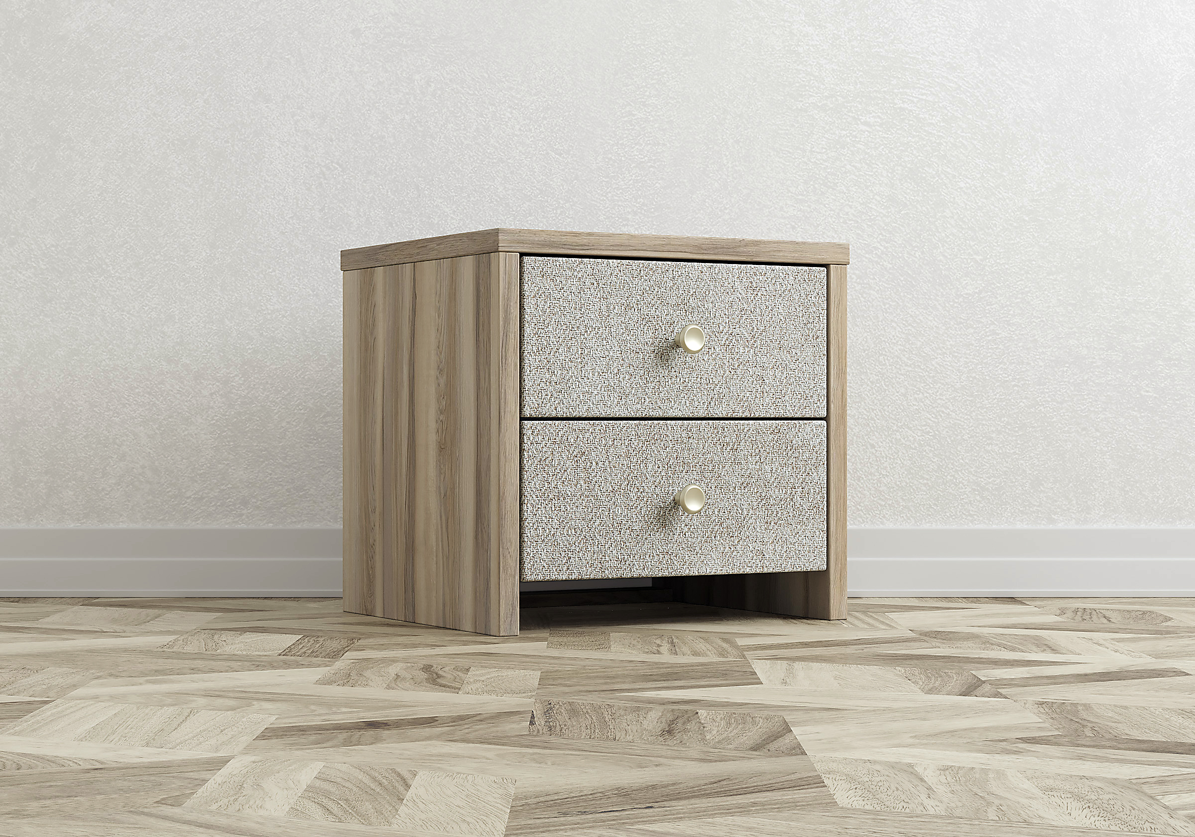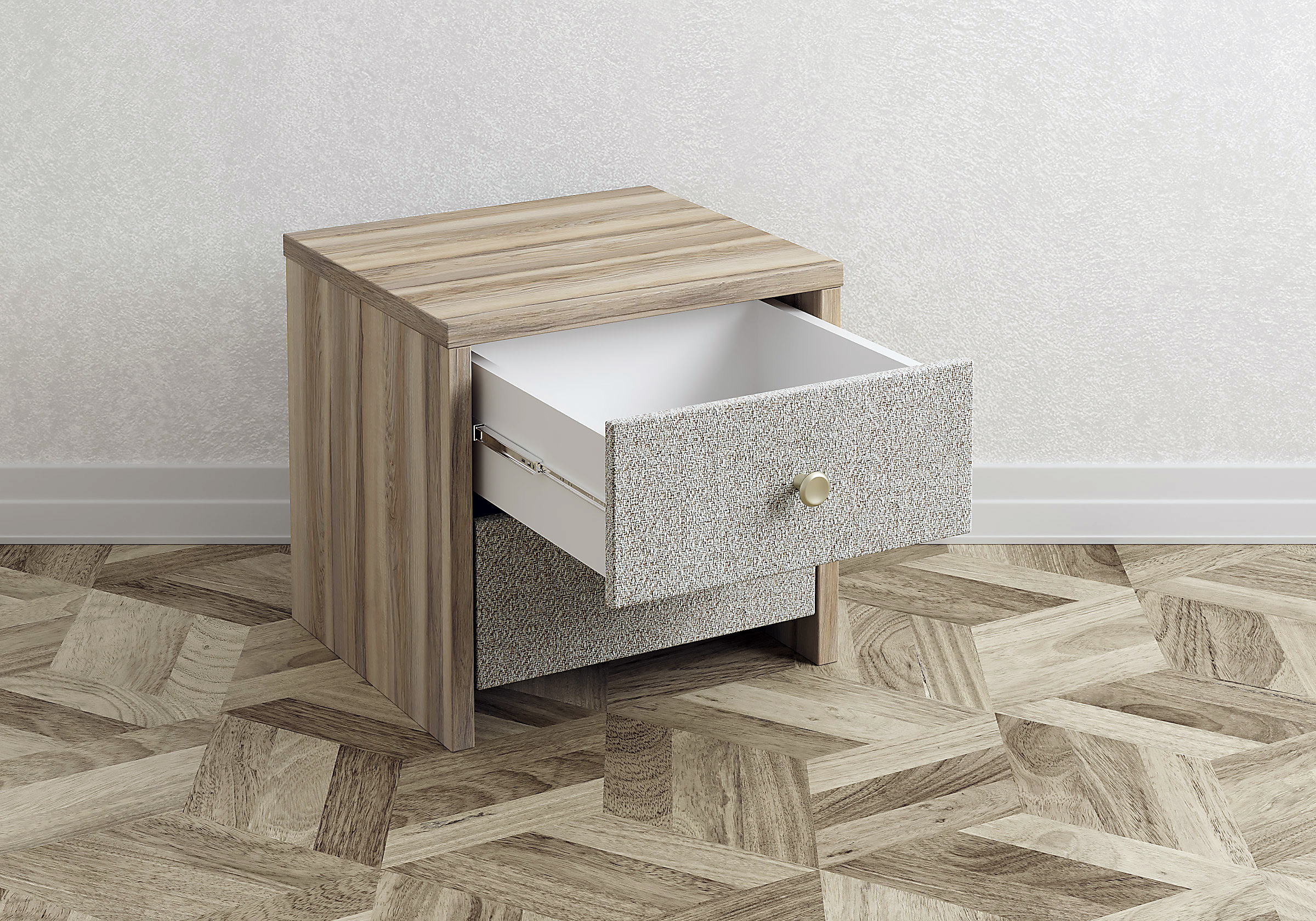 Чудесная стильная тумбочка с двумя выдвижными, обитыми тканью ящиками. Ящики выдвигаются и задвигаются легко. Рекомендую.