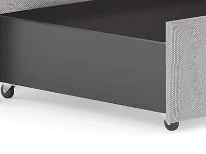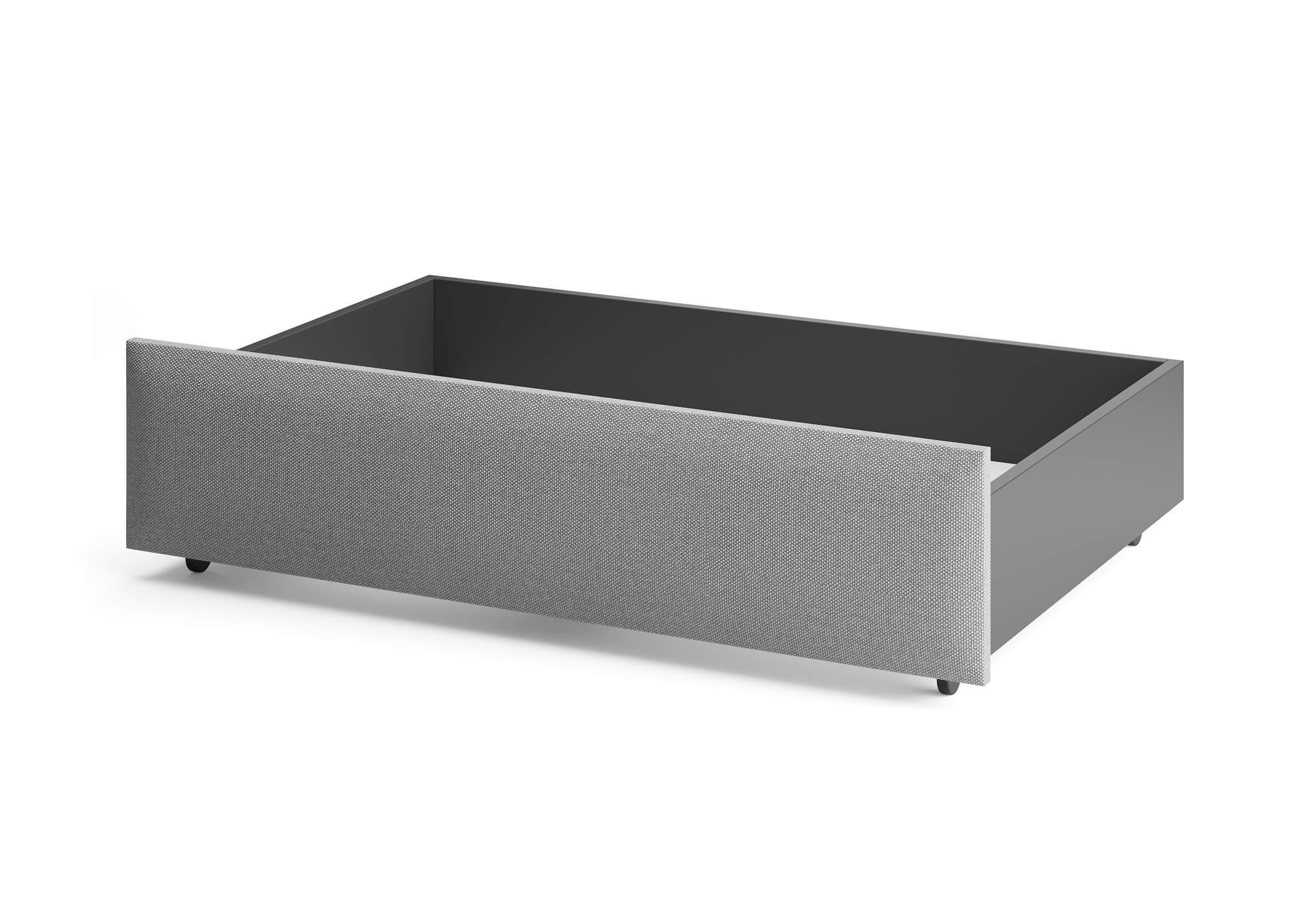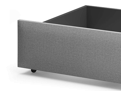 Ящик для хранения в ткани - лаконичное и функциональное решение для интерьера в современном, скандинавском и стиле минимализм. Ящики c мягкой обивкой фасада идеально сочетаются с кроватями Hanna и Julia, являются их функциональным дополнением - местом хранения. Ящики позволяют задействовать пространство под кроватью, не загромождая спальню. Они мобильны, их легко выкатывать и задвигать, что удобно для быстрого доступа к вещам, а также легкой уборки под кроватью. Фасад ящика мягкий, выполнен в тканевой обивке. Материал исполнения такой же как у кроватей Hanna, Julia - практичная рогожка багама. Корпус – ЛДСП графит. Надежные, поворотные колесные опоры с радиусом поворота 360 градусов.