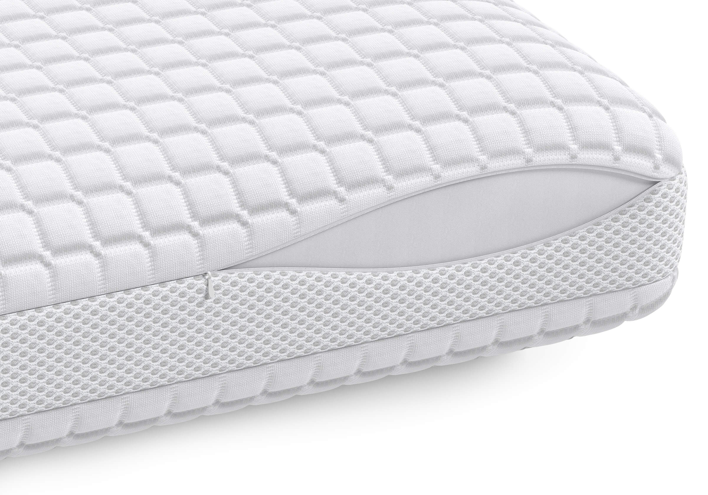Анатомическая подушка классической формы из пены с эффектом памяти – то, что нужно для здорового сна. Подушка обеспечит поддержку и комфорт, и предотвратит боли в шее и плечах во время сна. 3d сетка по периметру и пористость материала обеспечивают хороший воздухообмен, а благодаря вставки из охлаждающего геля достигается комфортная температура сна.